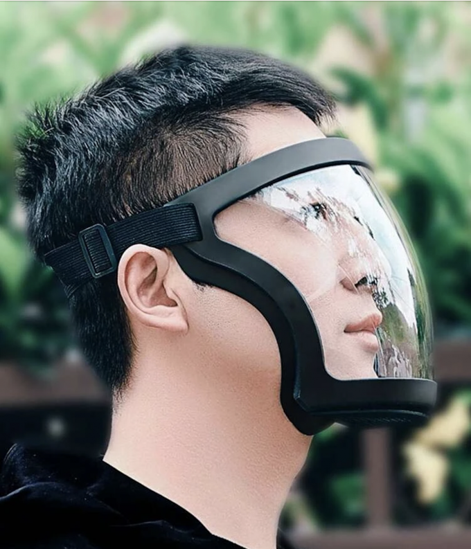 Dispone de una ventana antivaho de acetato transparente que se curva de forma natural para adaptarse al contorno del rostro, una amplia zona desde las cejas hasta la barbilla para protegerse de las agresiones externas, y protección total del rostro frente a gotas, saliva, salpicaduras, aceites y polvo.